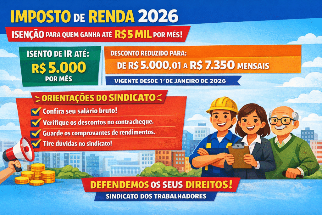 A nova tabela do Imposto de Renda (IR) 2026 entrou em vigor em 1º de janeiro e traz mudanças importantes para milhões de trabalhadores, servidores públicos e aposentados. A principal novidade é a isenção total do IR para quem recebe até R$ 5 mil por mês, além de uma redução gradual do imposto para rendas de até R$ 7.350.